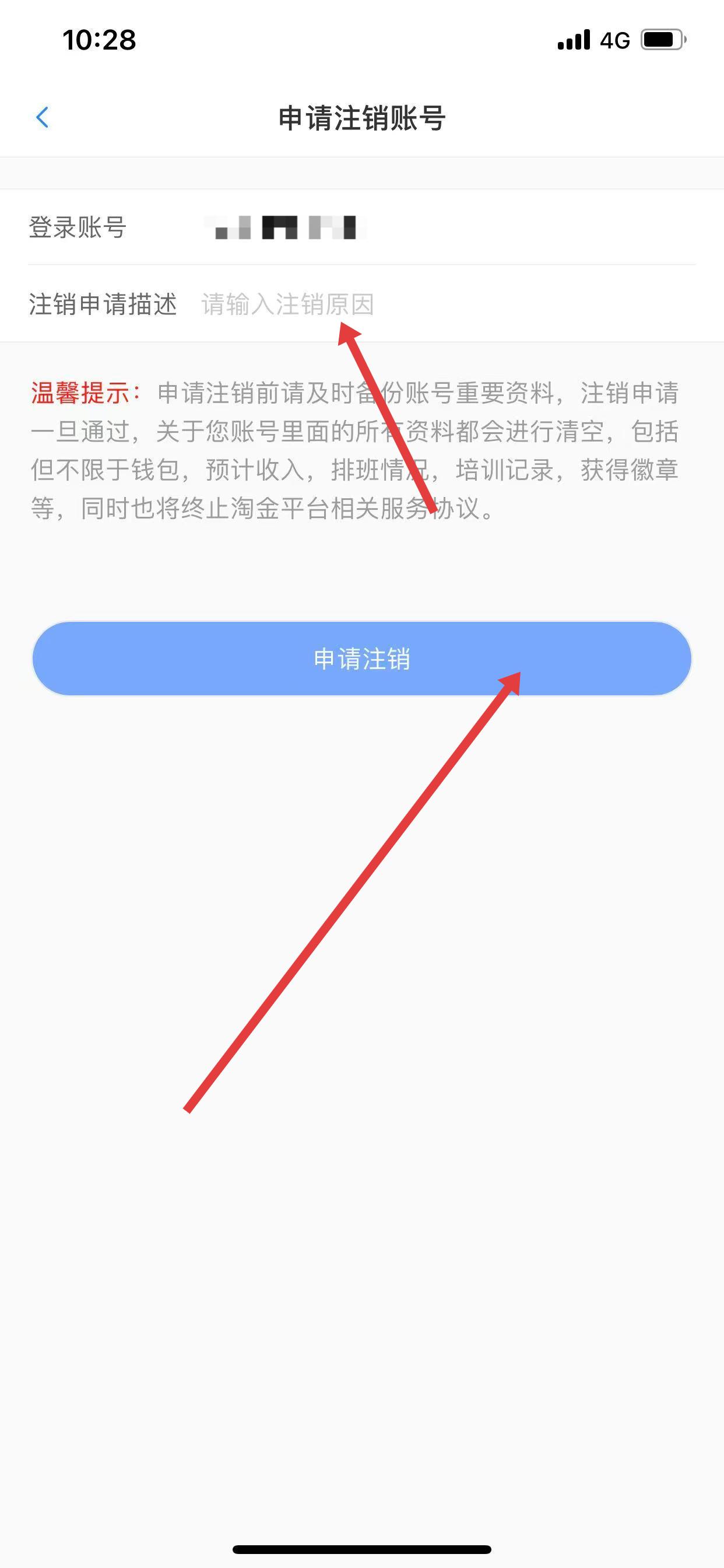 4、在注銷申請描述處輸入注銷原因,點擊申請注銷即可。