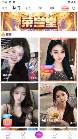 1、打開抱抱直播APP,點擊界面右下角我的,進(jìn)入個人頁面。
