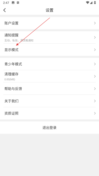 3、在設(shè)置界面里,找到顯示模式選項并點擊,進(jìn)入顯示模式設(shè)置頁面。