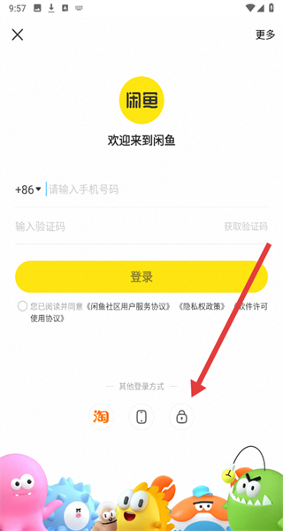 2、在進(jìn)入到登錄頁面中,可以點(diǎn)擊下方圖標(biāo),進(jìn)行切換登錄方式。