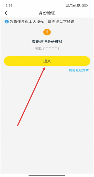 3、在身份驗(yàn)證頁面中,點(diǎn)擊提交按鈕,即可完成淘寶賬號驗(yàn)證操作。