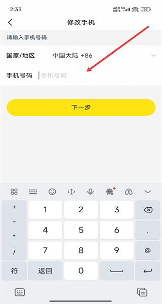 4、完成驗(yàn)證進(jìn)入修改手機(jī)頁面,點(diǎn)擊輸入框填寫手機(jī)號碼后,進(jìn)入下一步獲取驗(yàn)證碼進(jìn)行修改操作。
