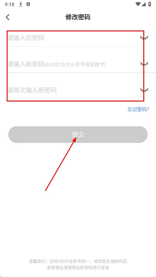 4、輸入舊密碼、新密碼、再次輸入新密碼,點(diǎn)擊提交。