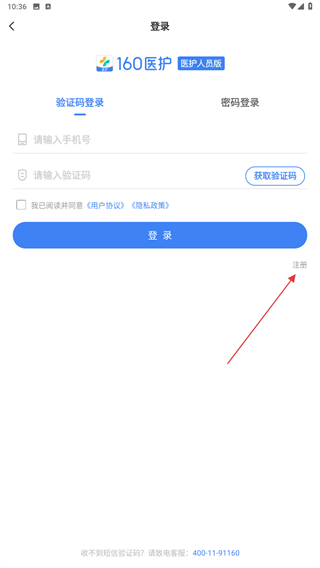 1、打開哦就醫(yī)160APP,在首頁點(diǎn)擊登錄的按鈕。