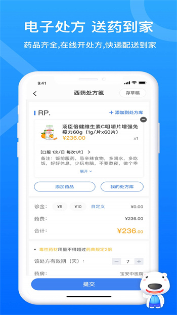 醫(yī)生線上“云”藥房,藥品齊全,配送到家,診療開方一鍵暢通。