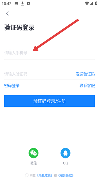 4、在驗(yàn)證碼登錄頁(yè)面輸入手機(jī)號(hào)碼,點(diǎn)擊“發(fā)送驗(yàn)證碼”進(jìn)行填寫(xiě),填寫(xiě)好驗(yàn)證碼后即可完成登錄操作。