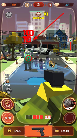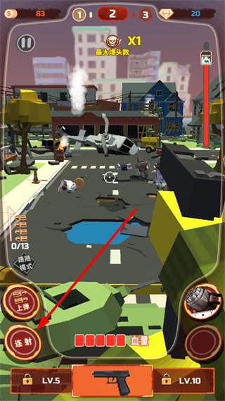 3、點擊滑動屏幕,對準僵尸即可自動連射攻擊。