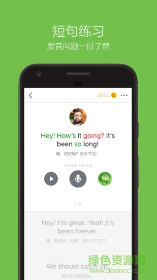 內(nèi)置來(lái)自硅谷的語(yǔ)音識(shí)別技術(shù),給你的英語(yǔ)口語(yǔ)實(shí)時(shí)打分,矯正發(fā)音。