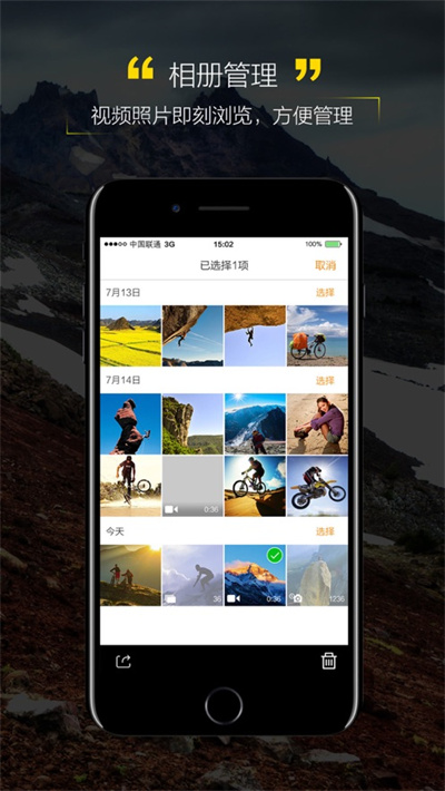 面對如今的運動拍攝上實現(xiàn)了實時遠程遙控攝像機拍照、錄像、直播等多種的拍攝功能使用,目前對于拍攝功能上手機端的操作更加的方便,可以實現(xiàn)手機端進行控制拍攝的模式和風格,拍攝畫面的清晰度實現(xiàn)了1080p60幀的高清錄像,不會造成拍攝卡頓、延遲等問題,實現(xiàn)各種創(chuàng)意好玩的拍攝方式,讓極限愛好者們可以實時的拍攝風景圖片。