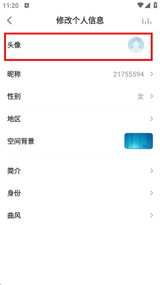 3、在修改個(gè)人信息頁(yè)面點(diǎn)擊頭像選項(xiàng),進(jìn)入圖片選擇界面。