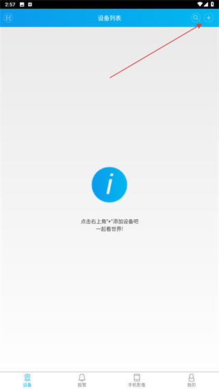 1、啟動監(jiān)控眼的APP,進入首頁點擊上方+號的按鈕。