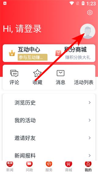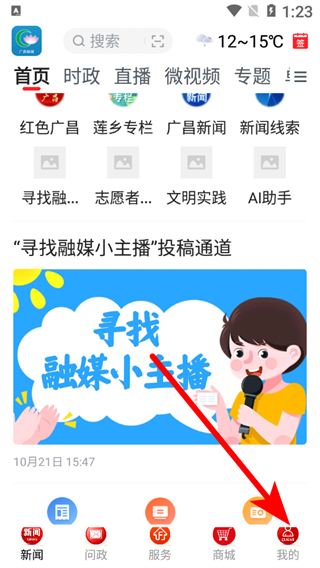 1、在廣昌融媒體app首頁,點擊右下角我的選項,進(jìn)入個人中心界面。