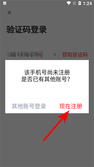 4、若手機(jī)號未注冊,點擊現(xiàn)在注冊選項,按提示完成注冊操作。