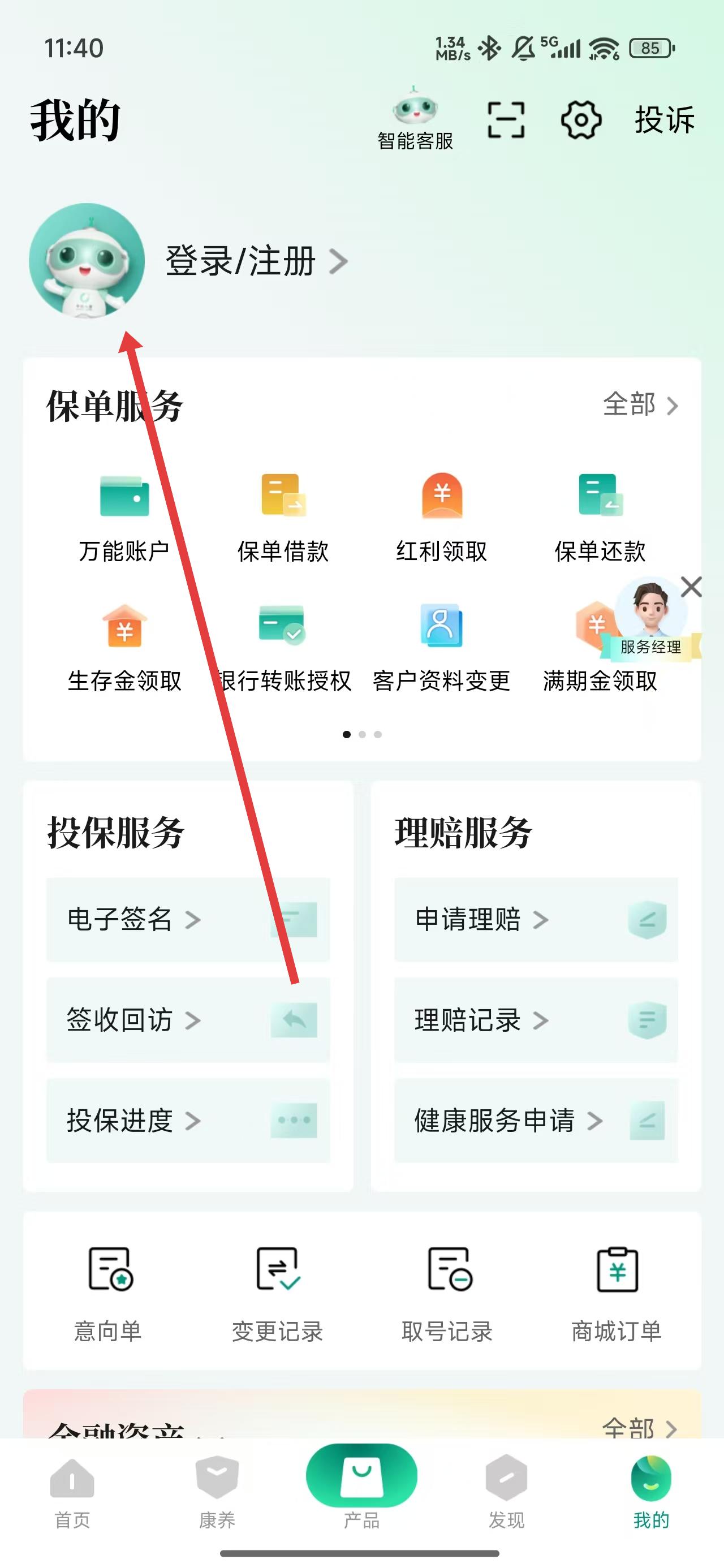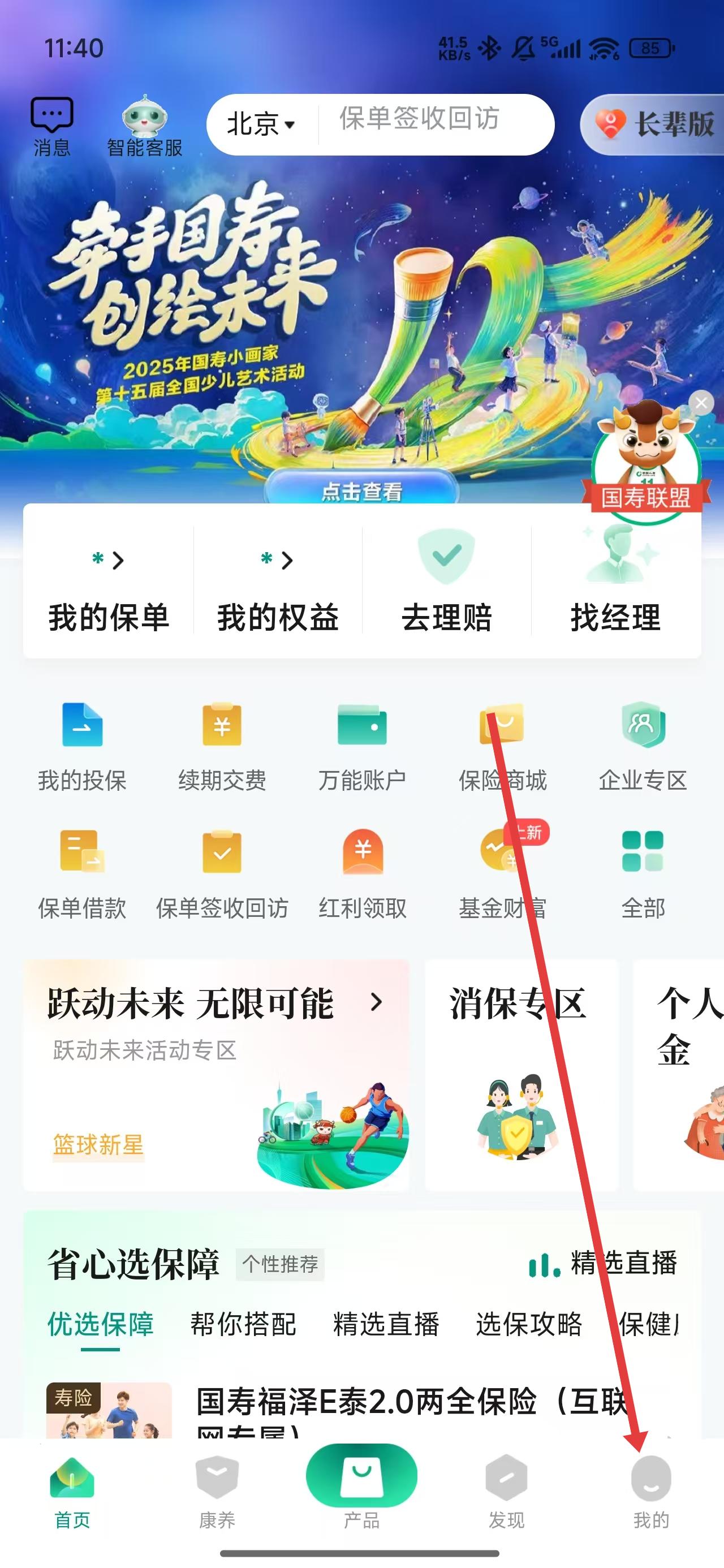 1、點擊中國人壽壽險首頁下我的按鈕,可進入到我的主頁。