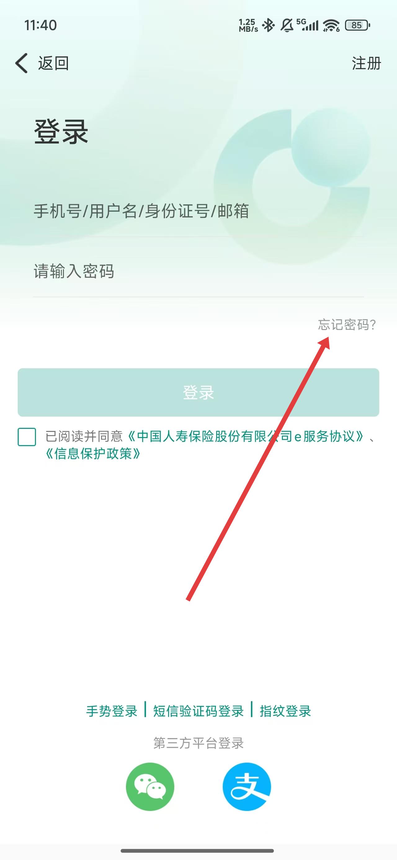 3、在跳轉(zhuǎn)到登錄頁面后,如果忘記了密碼,可以點擊下方忘記密碼按鈕解決。