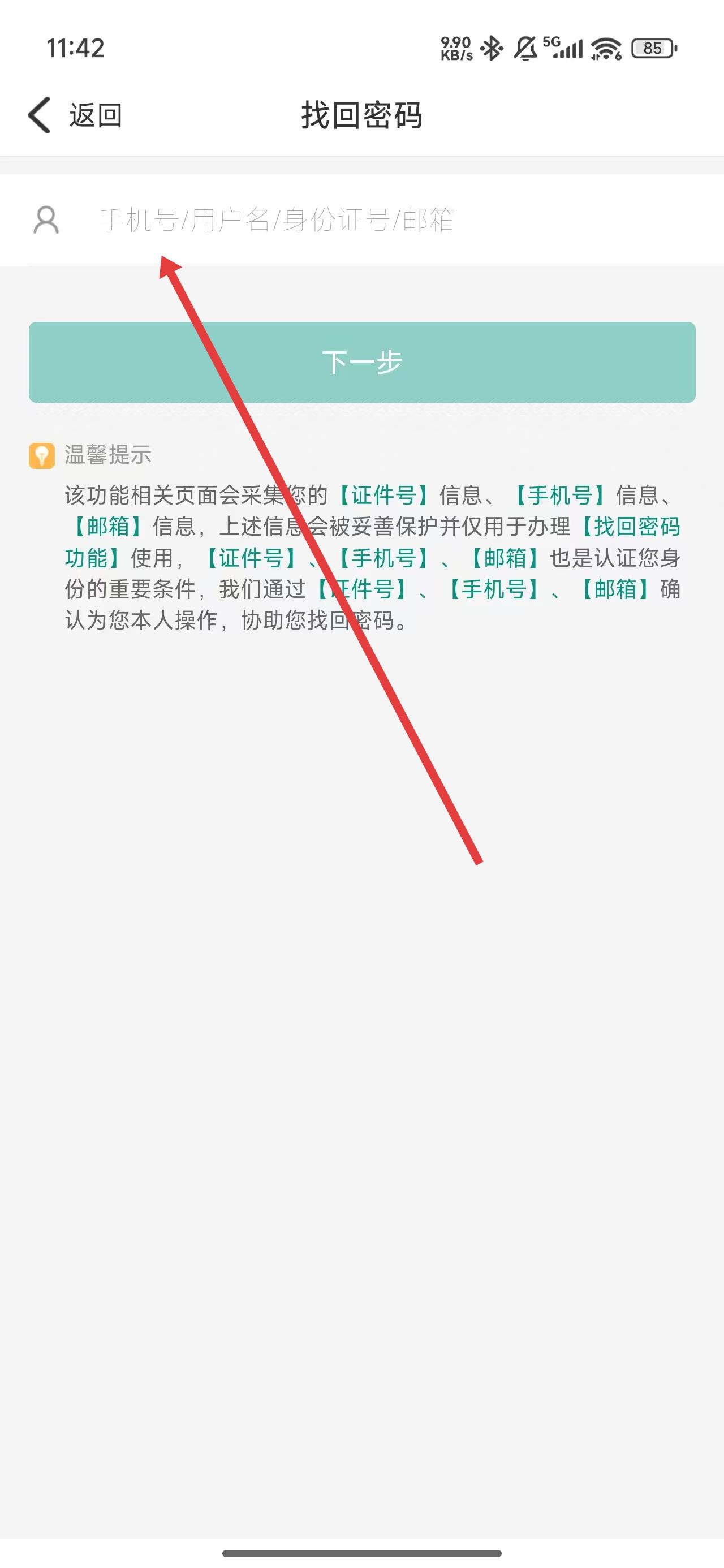4、在進入到找回密碼頁面中,點擊輸入框填寫對應信息后完成找回操作。