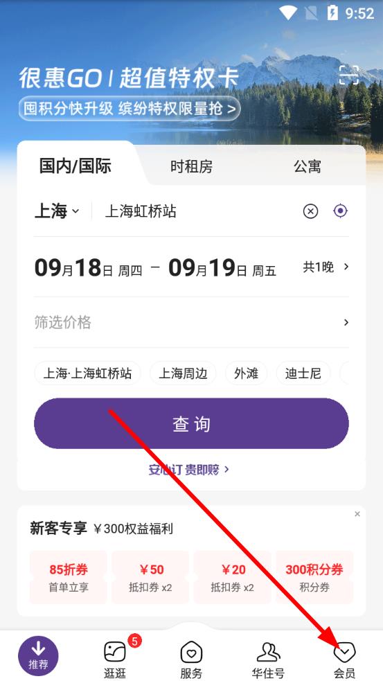 1、打開(kāi)華住會(huì)App,點(diǎn)擊底部導(dǎo)航欄的會(huì)員進(jìn)入會(huì)員界面。