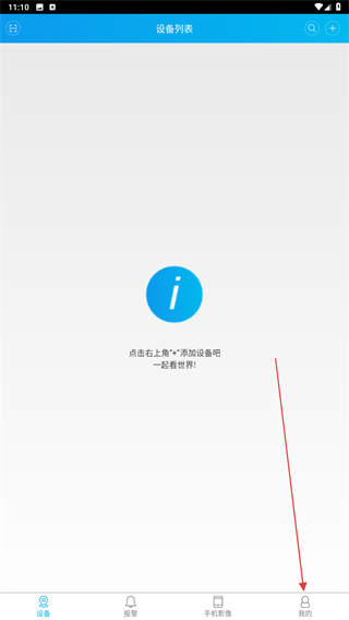 1、啟動(dòng)監(jiān)控眼的應(yīng)用,點(diǎn)擊首頁右下角我的圖標(biāo)按鈕。