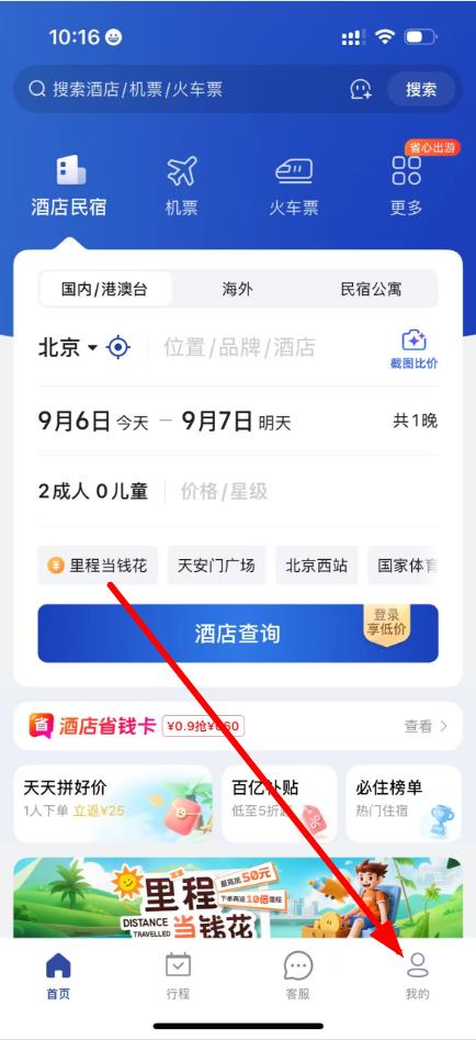 1、打開藝龍旅行APP,點(diǎn)擊底部我的選項(xiàng)進(jìn)入個(gè)人頁面。