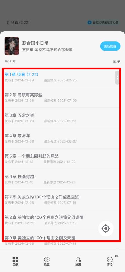 4、在目錄列表中,即可查看該小說的全部章節(jié)目錄。