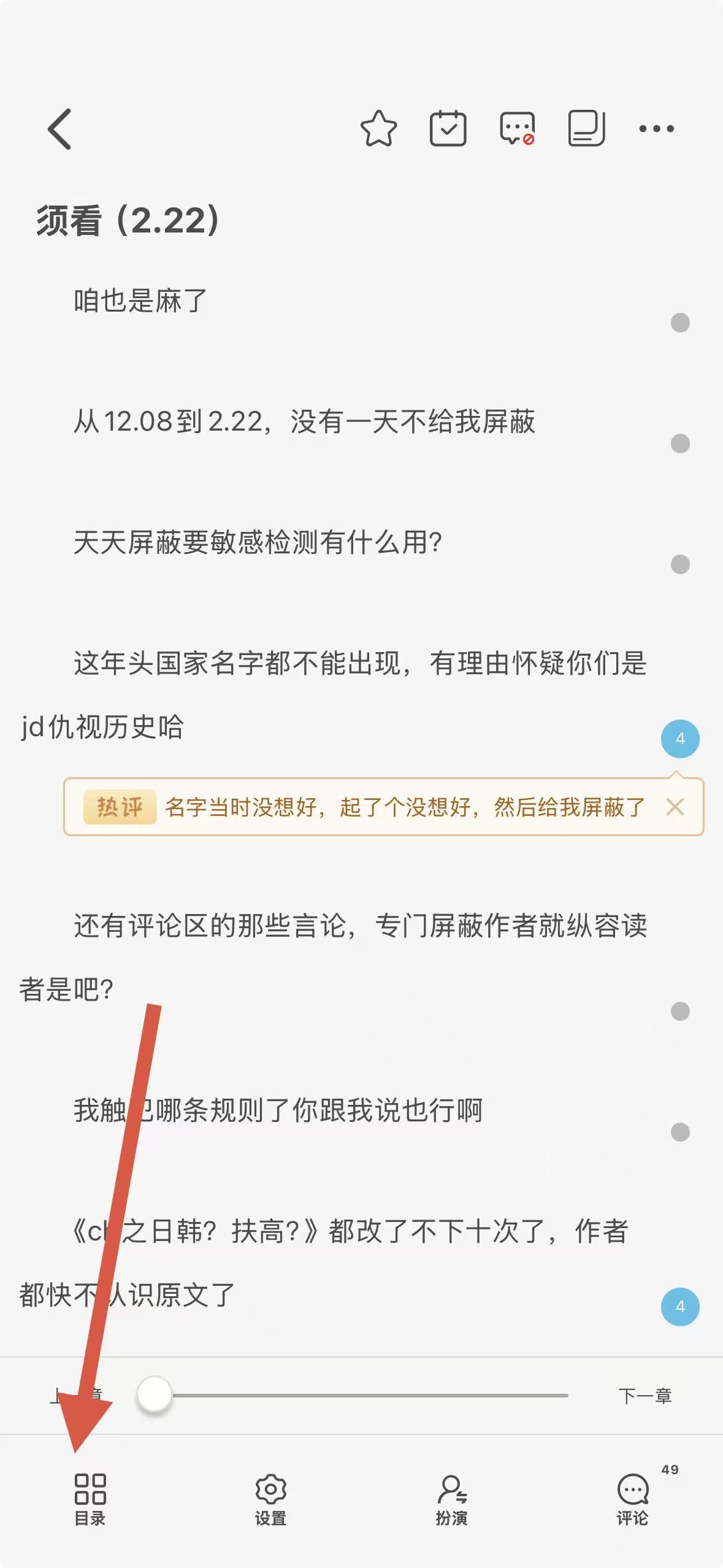 3、在小說閱讀界面,點擊左下角目錄選項,展開目錄列表。