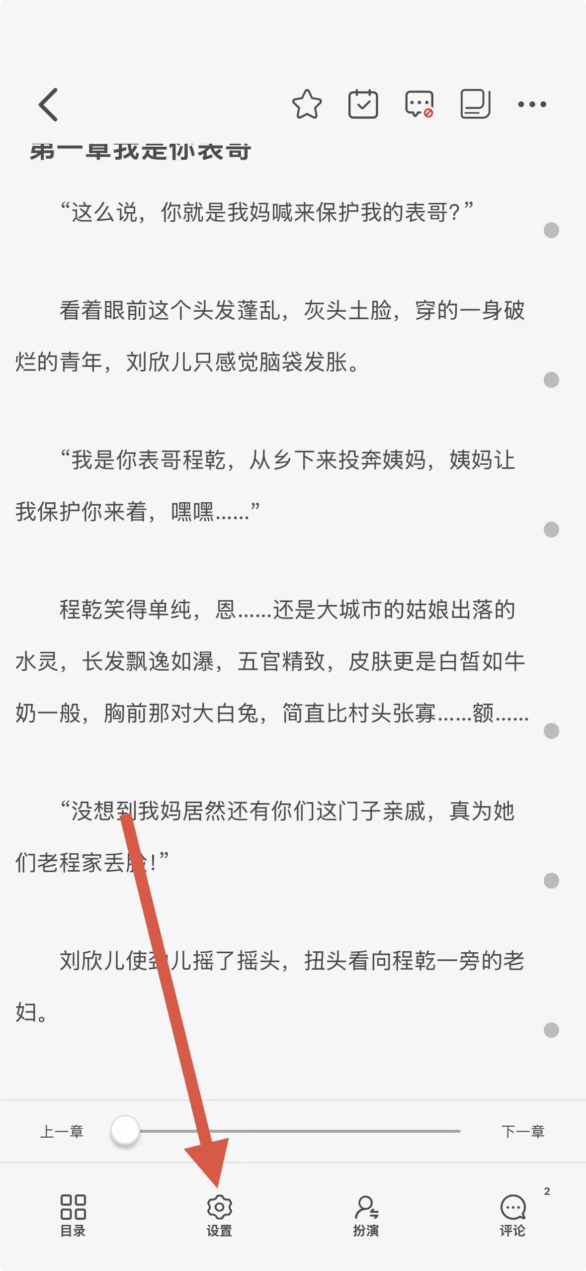 3、在閱讀界面,點擊底部設(shè)置選項,彈出設(shè)置菜單。
