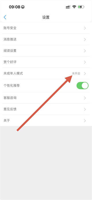 3、在設(shè)置頁面,點擊未成年人模式選項,進入對應(yīng)設(shè)置界面。