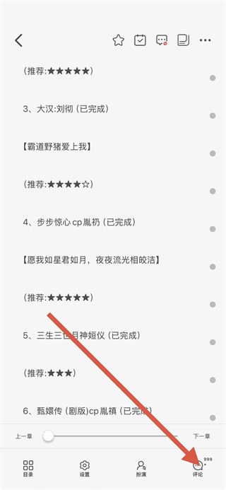 2、在書籍閱讀頁面,點擊評論選項,進入評論界面。