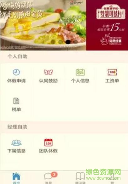 百勝yum百寶箱app是一款集協(xié)同辦公、在線請假、移動審批以及工資查詢等功能于一身的手機辦公軟件。實時推送最新企業(yè)公告、資訊信息。本軟件為百勝員工帶來了全方位的掌上服務體驗!本程序僅適用于辦公室及管理組員工!快來綠色資源網(wǎng)下載使用吧!