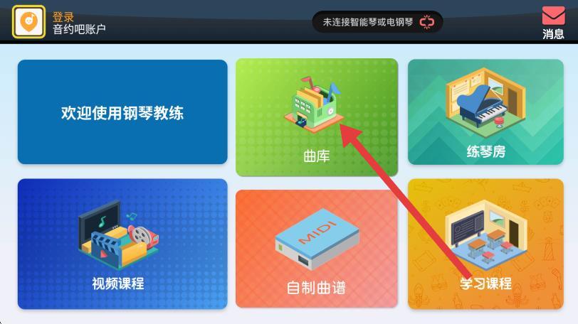 1、打開鋼琴教練,在主界面點擊曲庫進入曲譜列表頁面。