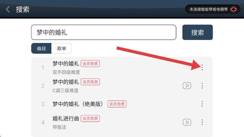 3、找到并點擊目標曲譜右側(cè)的三點圖標,彈出操作菜單。