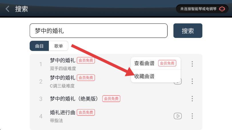 4、在菜單中選擇收藏曲譜選項,即可完成收藏曲譜。