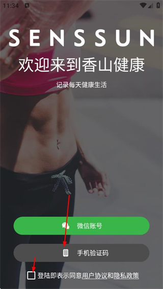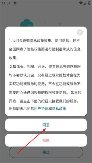 1、打開香山健康A(chǔ)PP,在隱私政策彈窗中點擊同意。