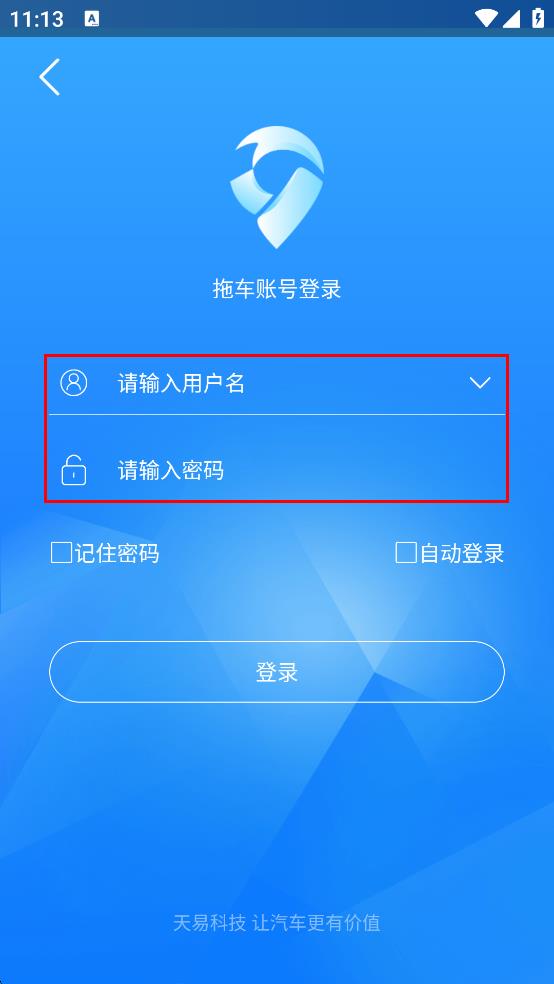 4、輸入完成后,點(diǎn)擊“登錄”按鈕,即可完成拖車(chē)賬號(hào)登錄操作。