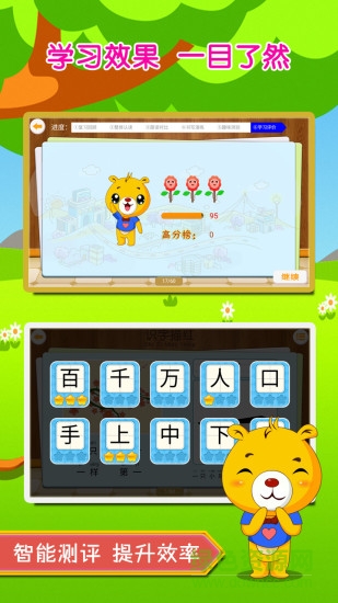 7.識(shí)字效率高:智能化選擇寶寶陌生的漢字進(jìn)行學(xué)習(xí),并對(duì)已學(xué)過(guò)的漢字給出客觀評(píng)價(jià)。