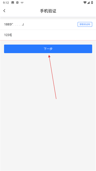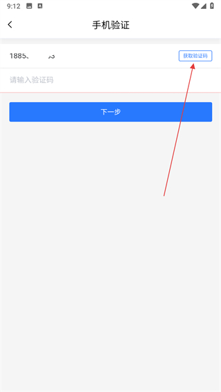 3、在手機驗證頁面輸入手機號,點擊獲取驗證碼按鈕。