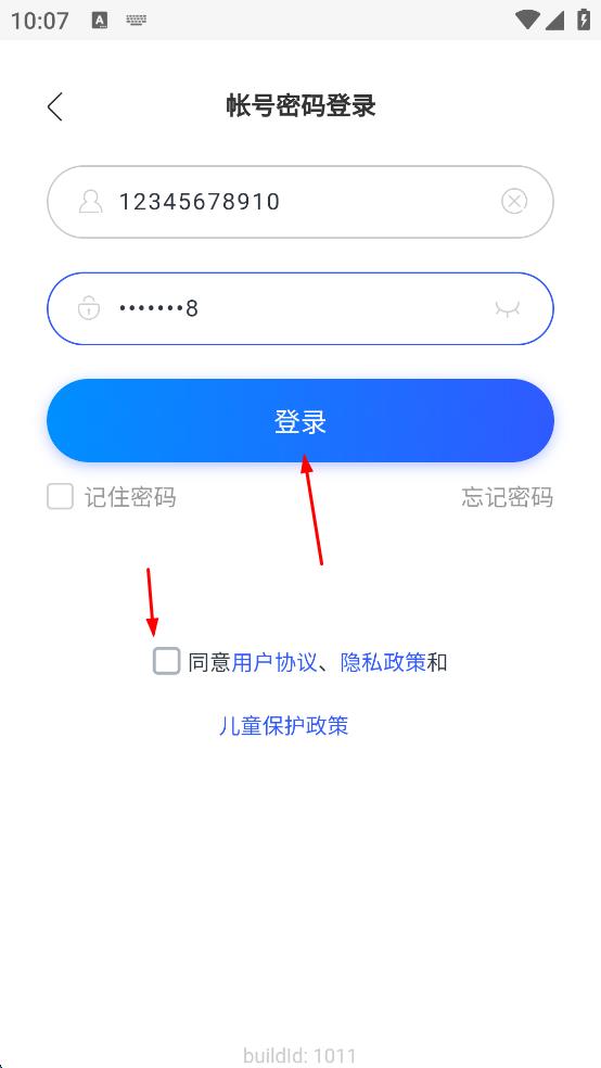 4、輸入完成后,勾選“同意用戶(hù)協(xié)議、隱私政策和兒童保護(hù)政策”,然后點(diǎn)擊“登錄”按鈕,即可完成賬號(hào)密碼登錄流程。
