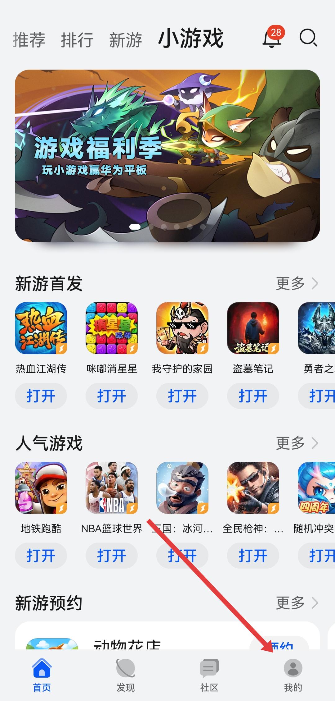 1、打開華為游戲中心APP,點擊底部導航欄的我的,進入個人中心頁面。