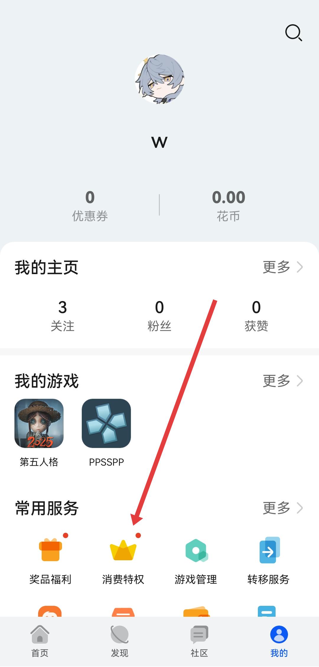 2、在我的頁面中,找到消費特權(quán)選項并點擊,進入消費特權(quán)詳情頁面。