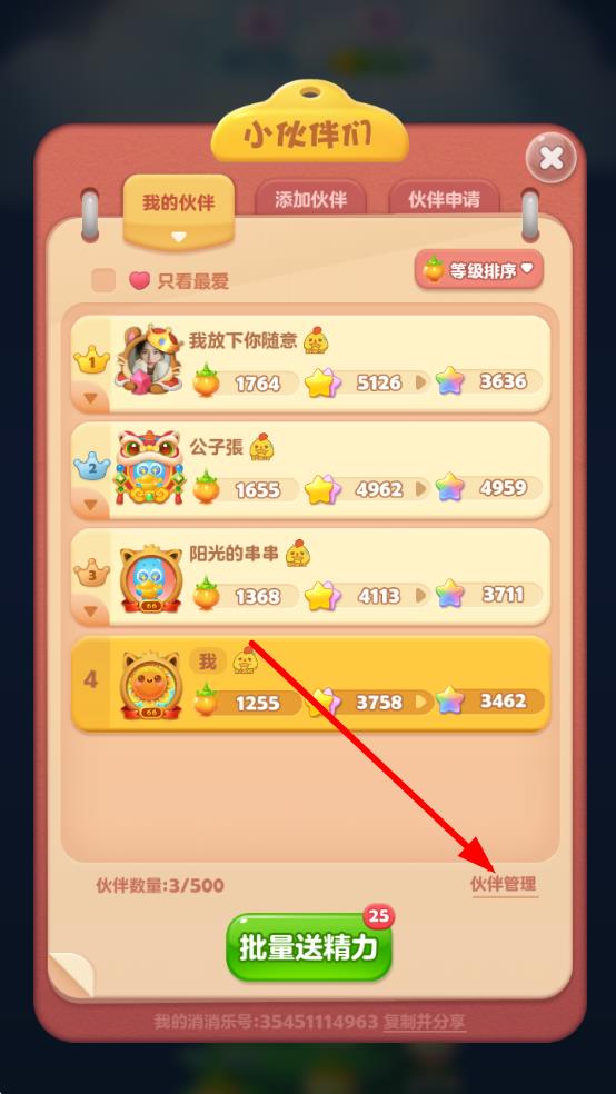 3、在小伙伴管理界面里,點擊下方的伙伴管理,找到想要刪除的小伙伴,點擊其對應的刪除按鈕,確認刪除即可。