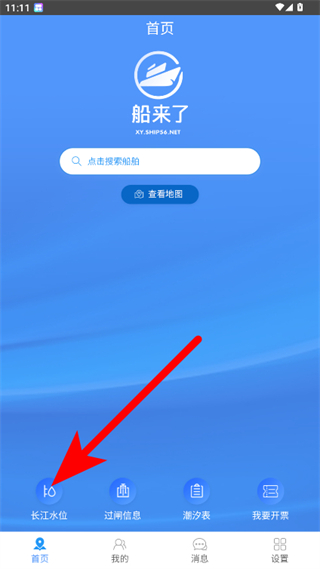 1、在船來了app首頁,點擊長江水位選項,進(jìn)入水位查看頁面。