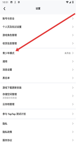 3、在跳轉(zhuǎn)至設(shè)置頁面中,可以點擊青少年模式選項,進行開啟操作。