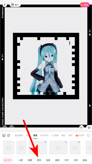 3、進(jìn)入圖片編輯界面后,點擊濾鏡,展開濾鏡樣式列表。