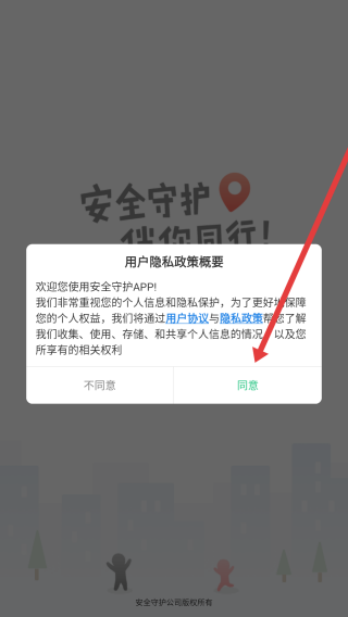 1、在打開安全守護app后,可以點擊彈窗中的同意按鈕,進入使用。