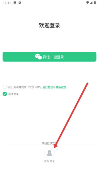 2、進入到登錄頁面后,點擊下方的賬號登錄按鈕,可切換登錄方式。