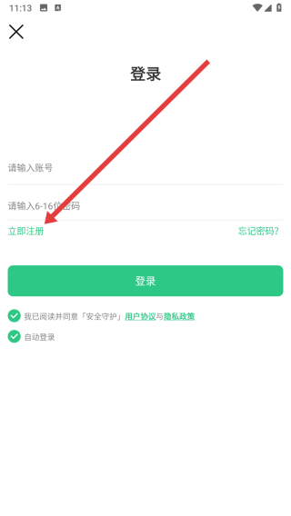 3、在切換到賬號登錄頁面時,若沒有賬號可以點擊下方立即注冊按鈕。