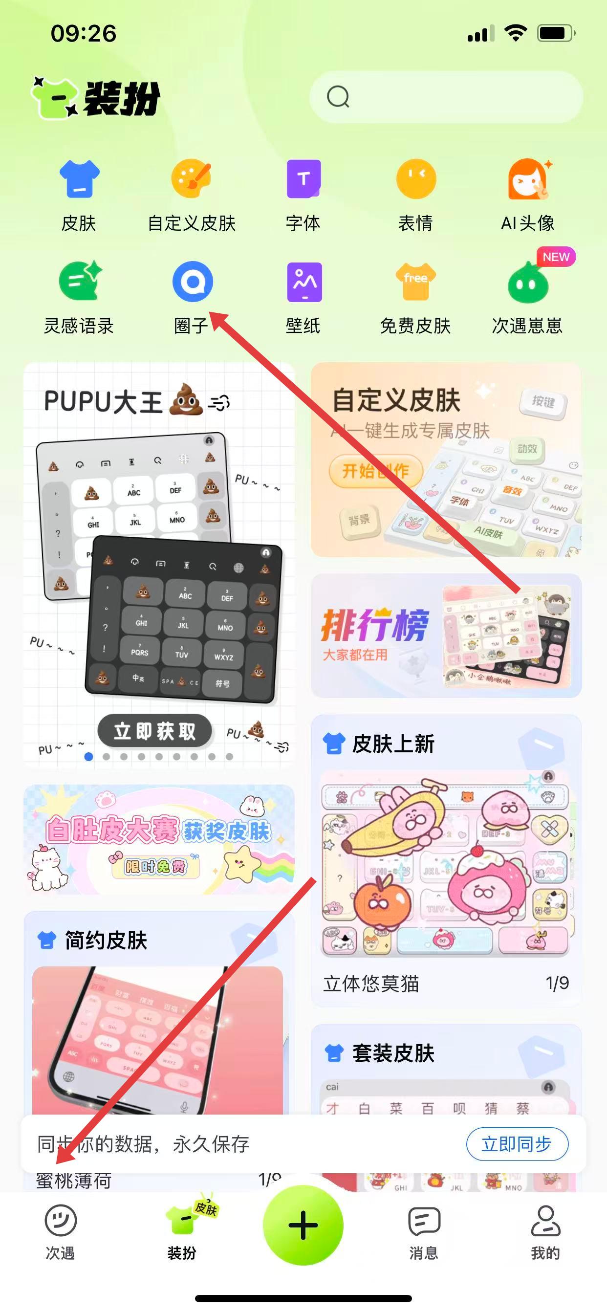1、進(jìn)入百度輸入法首頁,在裝扮界面點(diǎn)擊圈子。