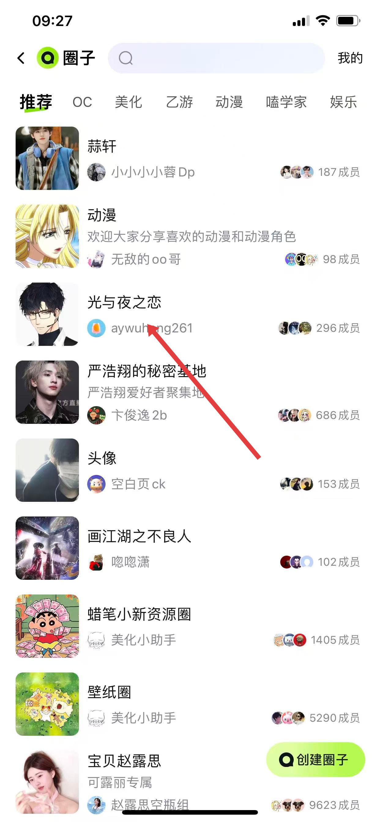 2、進(jìn)入展示各類主題圈子的推薦頁面,選感興趣的圈子,點(diǎn)擊。