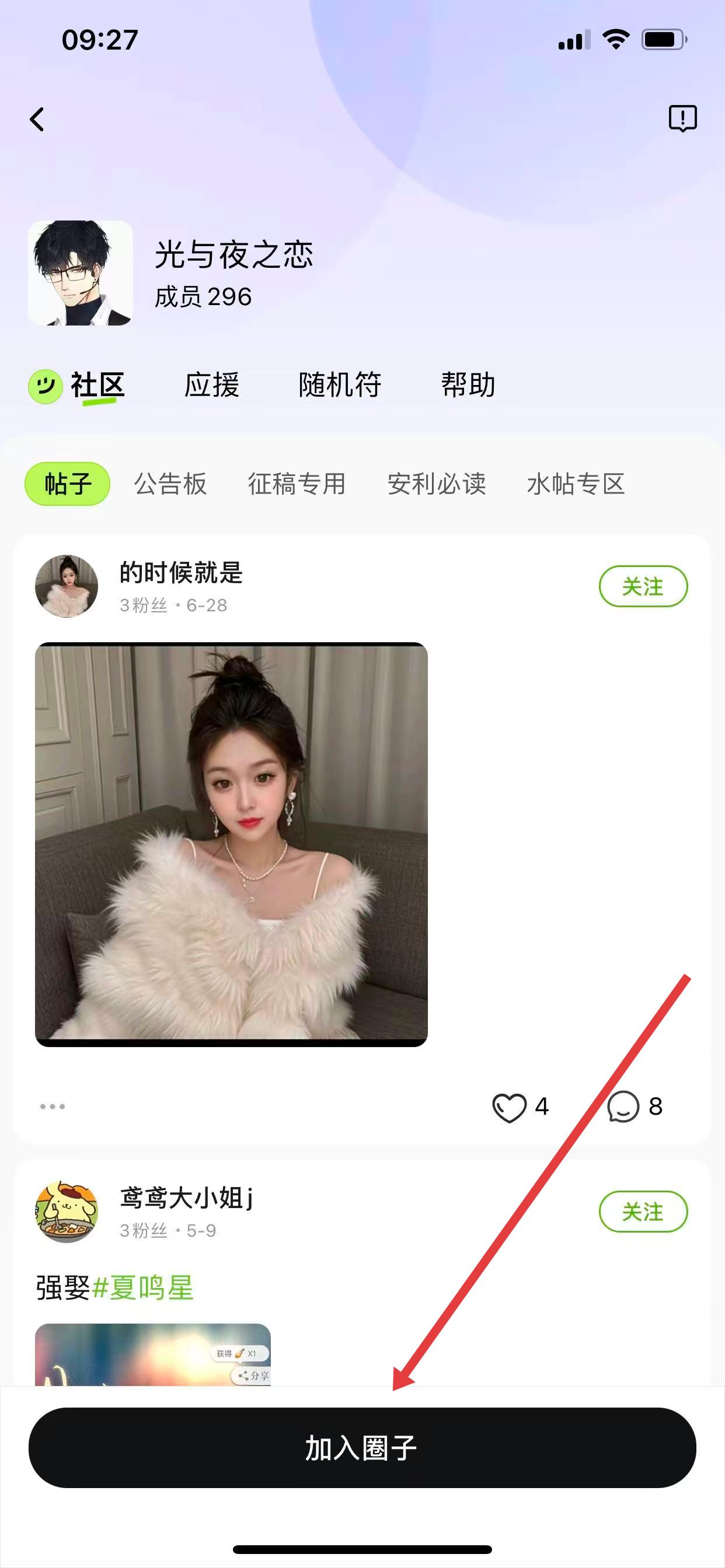 3、進(jìn)入詳情頁后,點(diǎn)下方加入圈子,即可加入并參與互動(dòng)、瀏覽帖子。