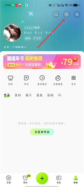 2、在我的頁面,點(diǎn)擊右上角的設(shè)置圖標(biāo)。